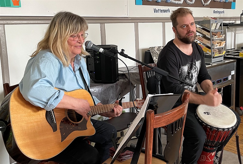 Stina och Olle i NLV-skolans mysiga matsal bjöd på god underhållning .