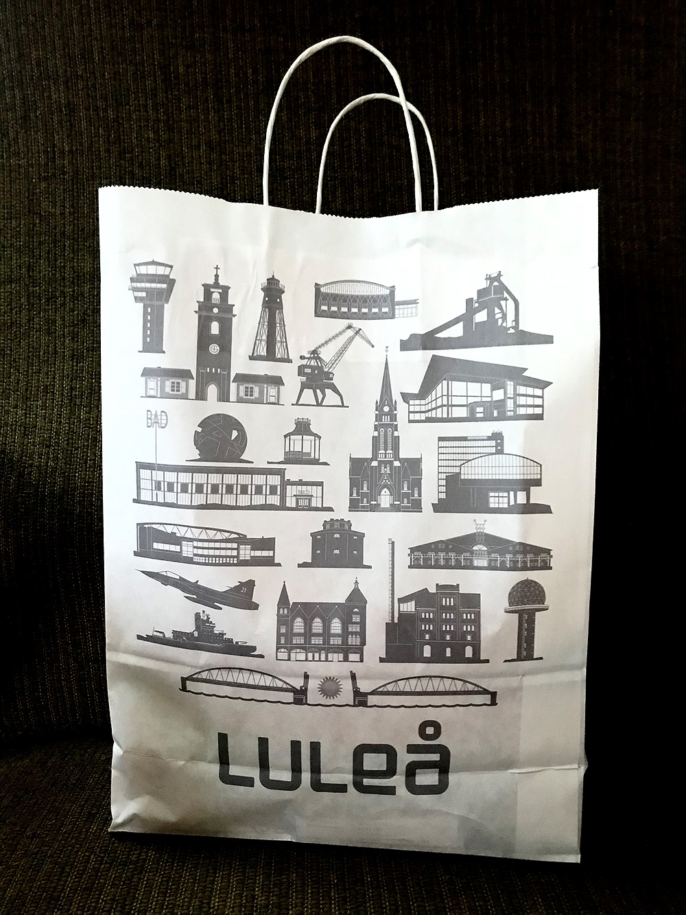 På den fina påsen finns bilder som symboliserar Luleå, varav två av de utvalda finns i Svartöstaden med närområde.