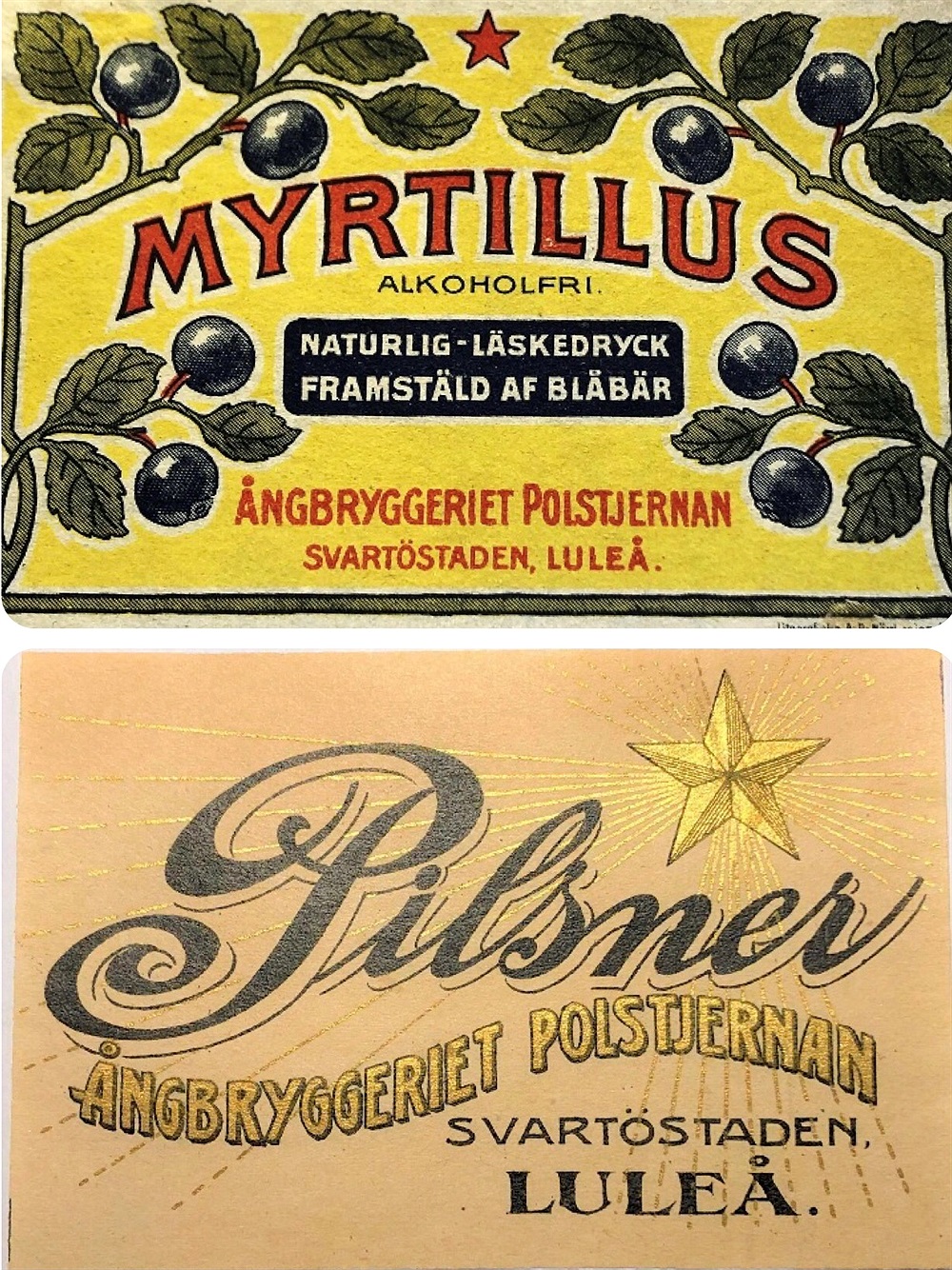 Härliga etiketter från gamla Ångbryggeriet Polstjernan.